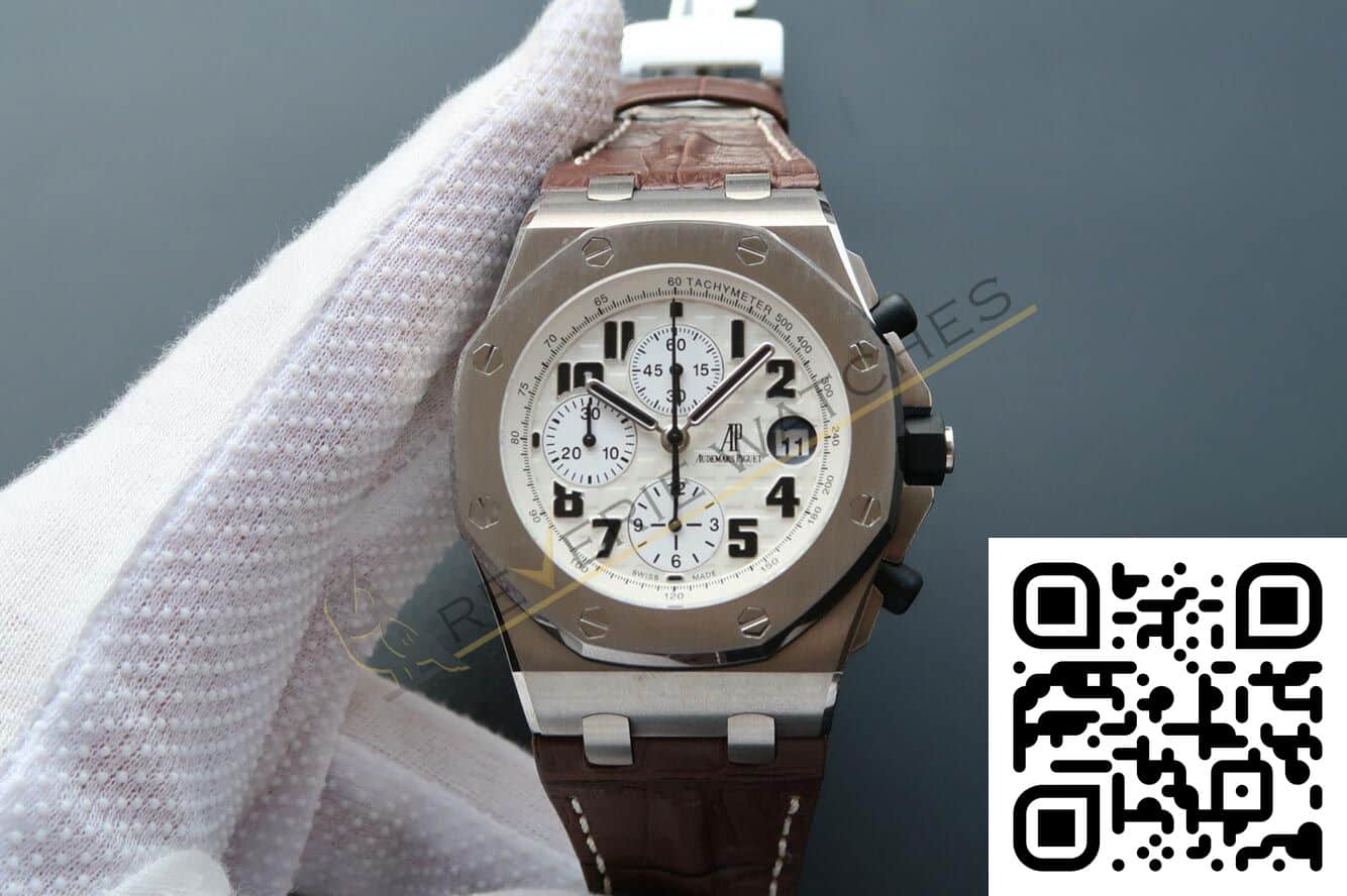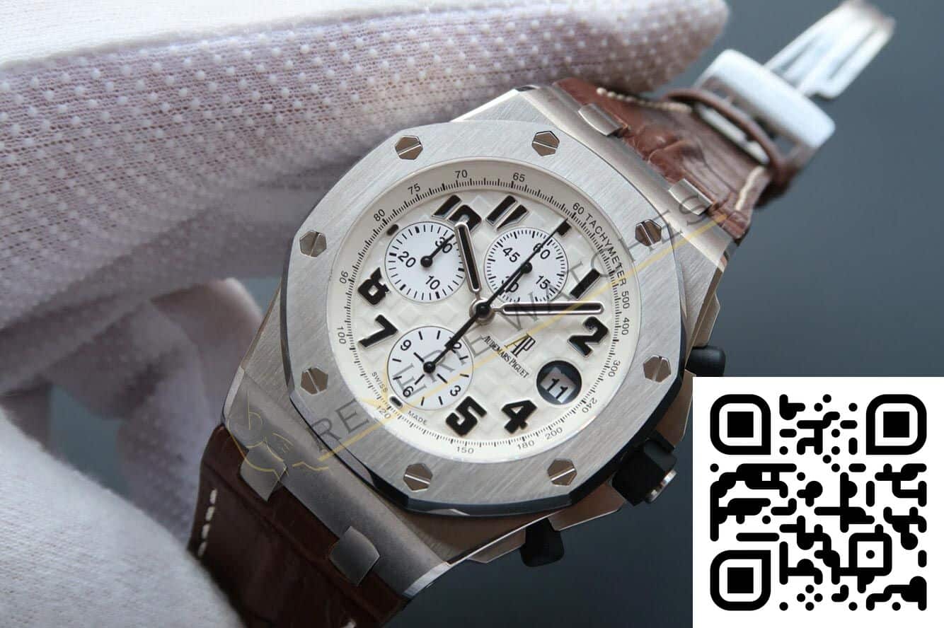 The best Audemars Piguet Offshore Chronograph White Dial Leather Replica super clone on the market with worldwide shipping and a 2 year Reverie Watches warranty!