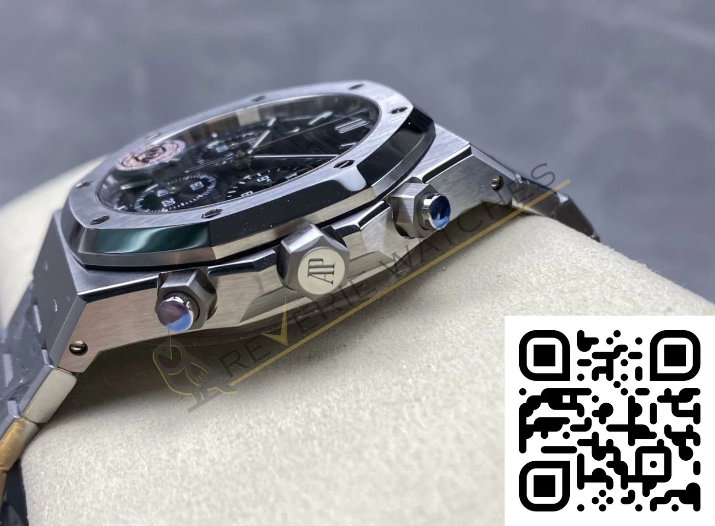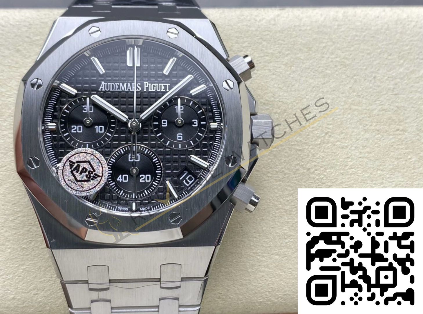 The best Audemars Piguet Royal Chronograph Black Dial Replica super clone on the market with worldwide shipping and a 2 year Reverie Watches warranty.