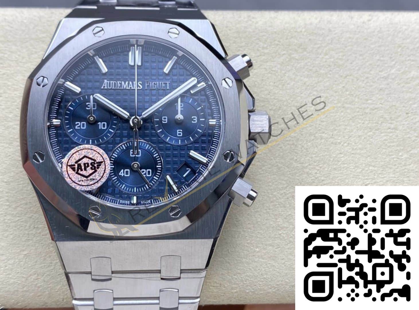 The best Audemars Piguet Royal Chronograph Blue Dial Replica super clone on the market with worldwide shipping and a 2 year Reverie Watches warranty.