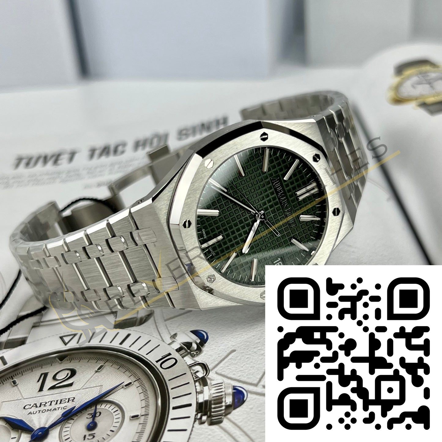 The best Audemars Piguet Royal Oak 15510st Green Dial Replica super clone on the market with worldwide shipping and a 2 year Reverie Watches warranty.