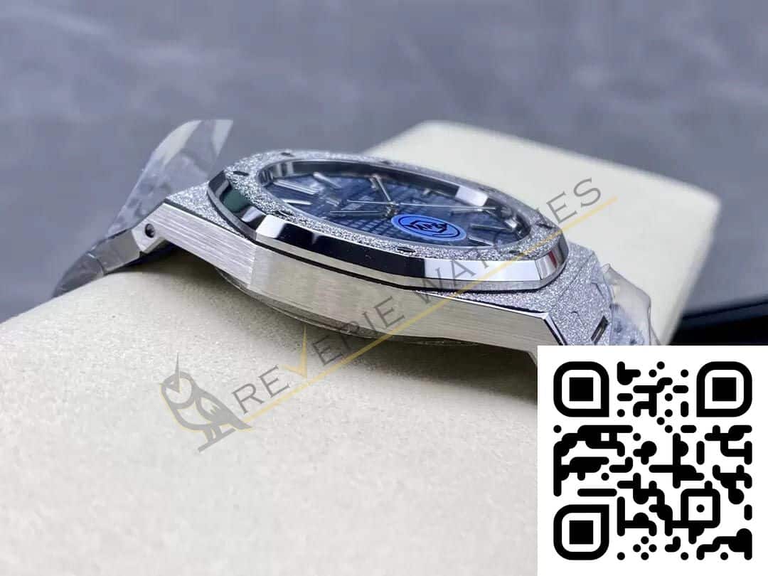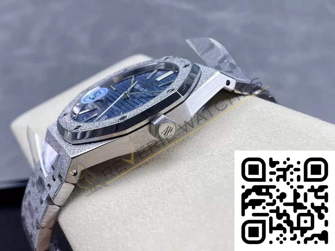 The best Audemars Piguet Royal Oak Frosted Blue Replica super clone on the market with worldwide shipping and a 2 year Reverie Watches warranty.