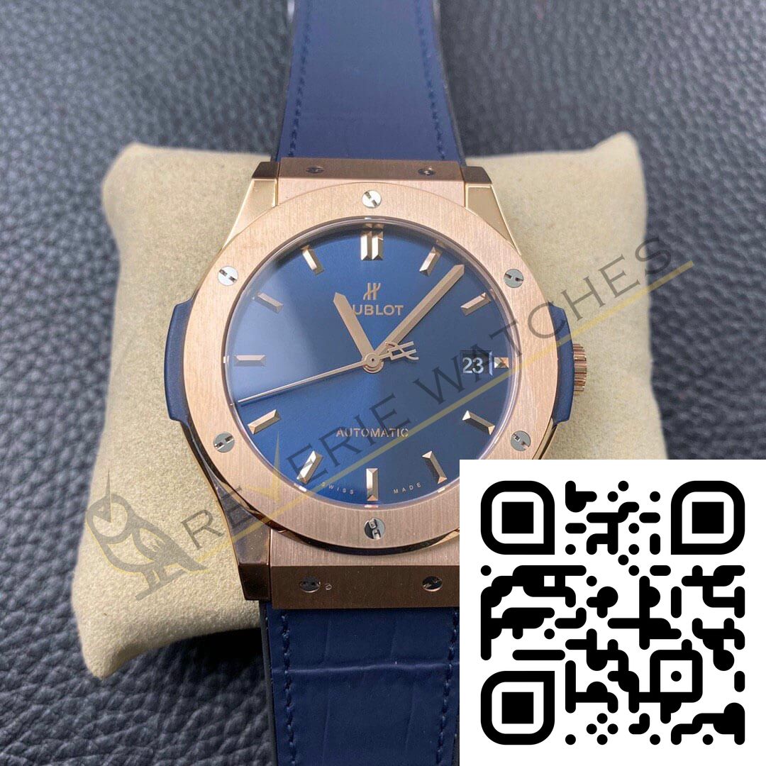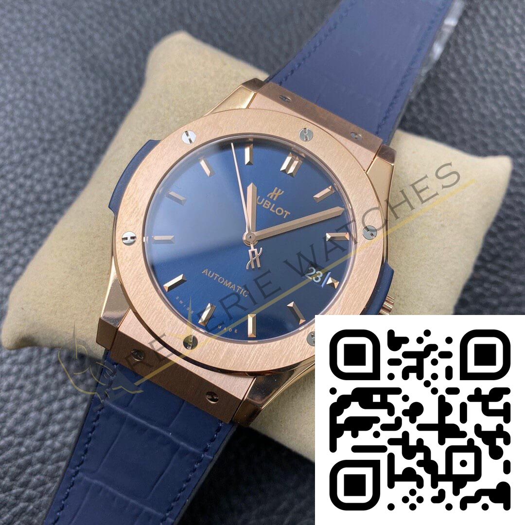 The best Hublot Classic Fusion Rose Gold Blue Replica super clone on the market with worldwide shipping and a 2 year Reverie Watches warranty.