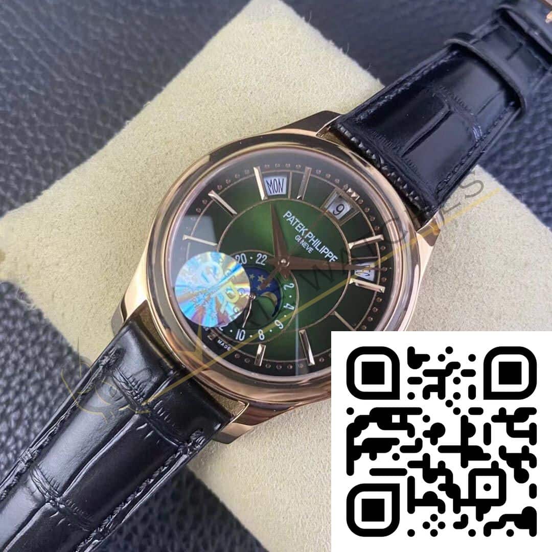 The best Patek Philippe Complications 5205 Rose Gold Green Dial Replica super clone on the market with worldwide shipping and a 2 year Reverie Watches warranty.