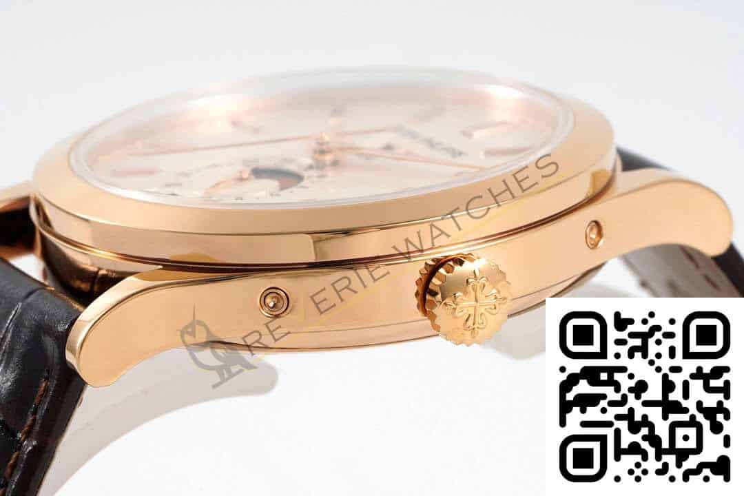 The best Patek Philippe Complications 5396 Rose Gold White Dial Replica super clone on the market with worldwide shipping and a 2 year Reverie Watches warranty.