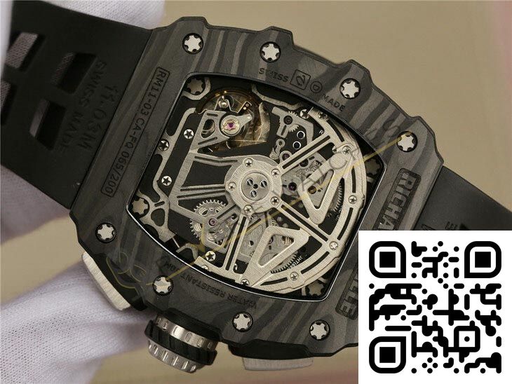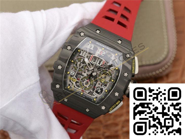 The best Richard Mille 11-03 Flyback Chronograph Black NTPT Carbon Replica super clone on the market with worldwide shipping and a 2 year Reverie Watches warranty.