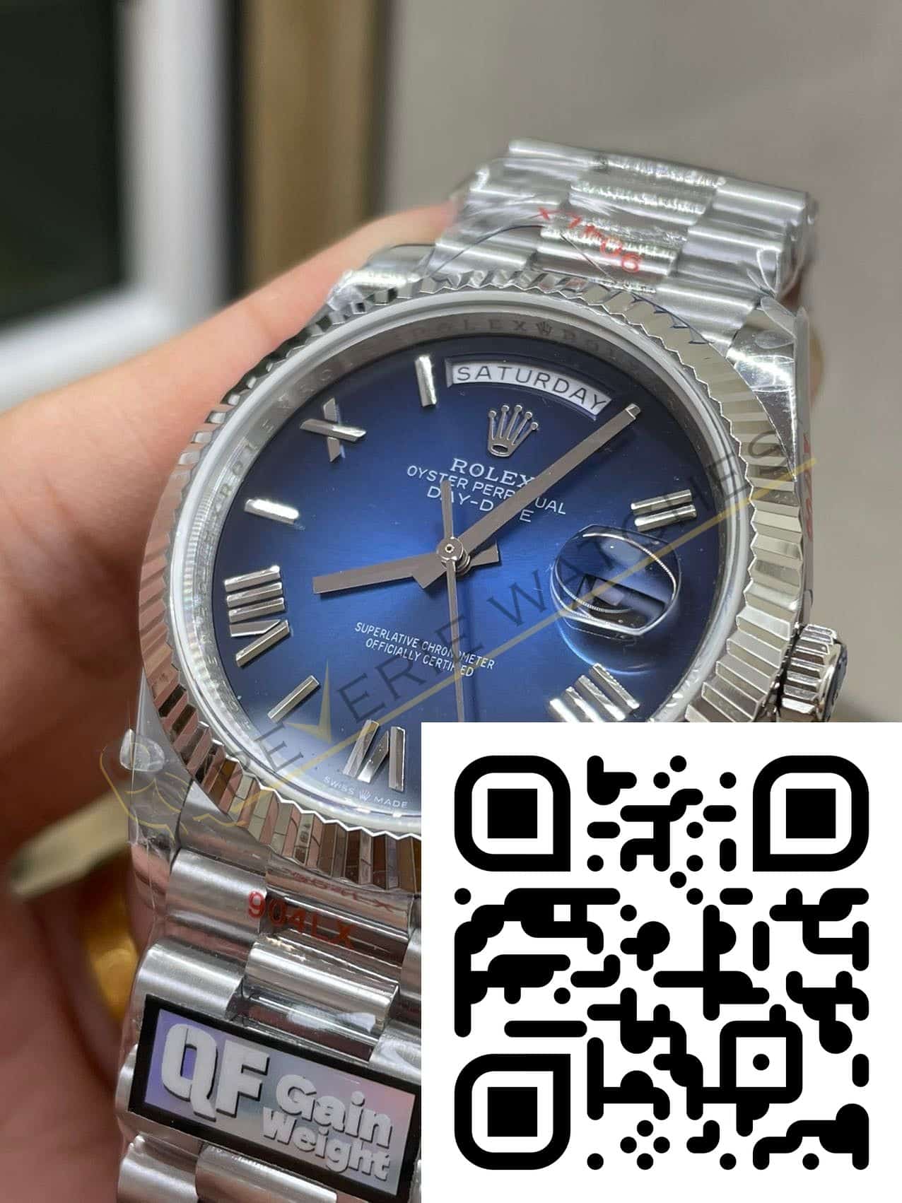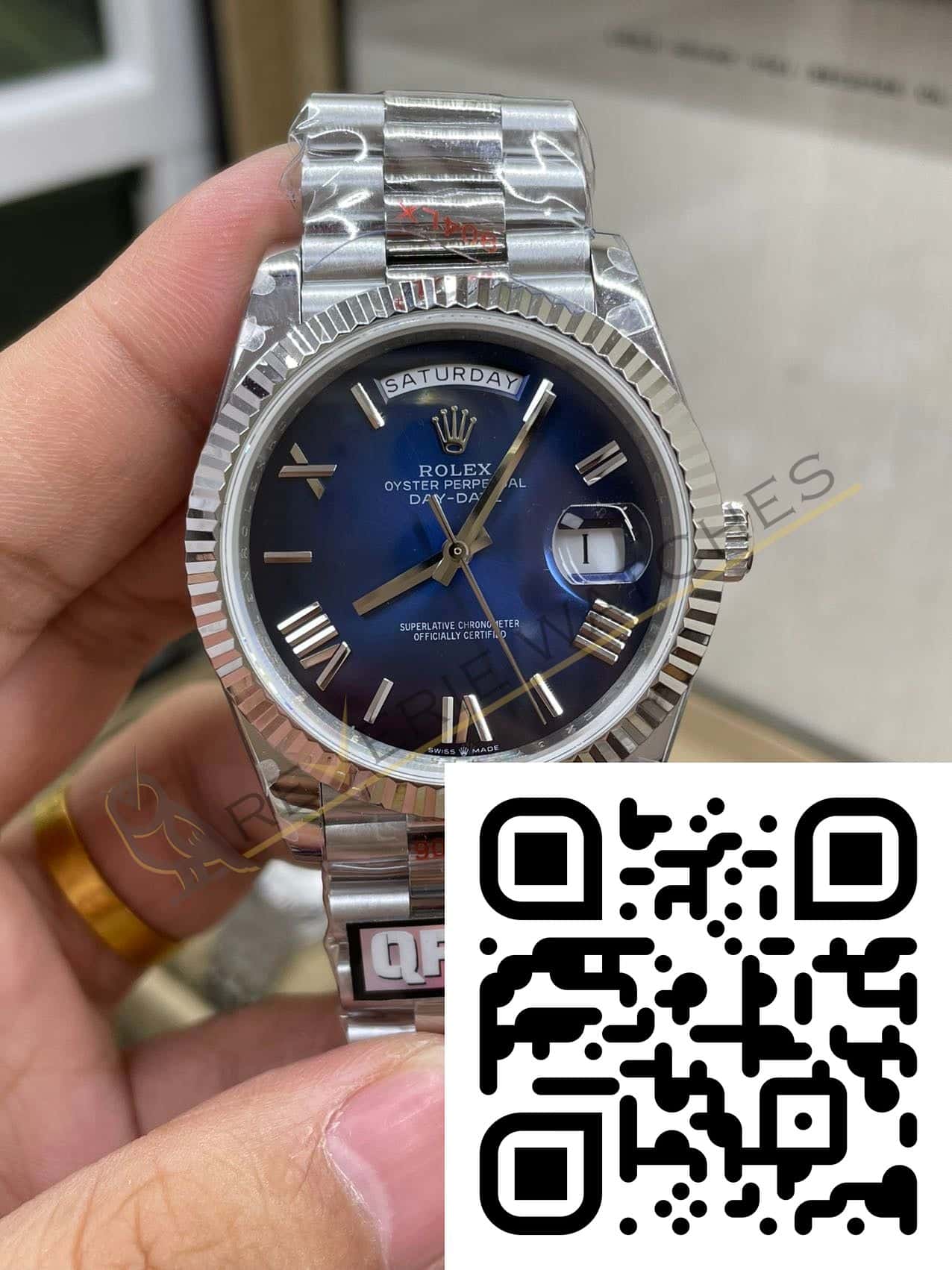 The best Rolex Day-Date 40 Blue Ombre Replica super clone on the market with worldwide shipping and a 2 year Reverie Watches warranty.