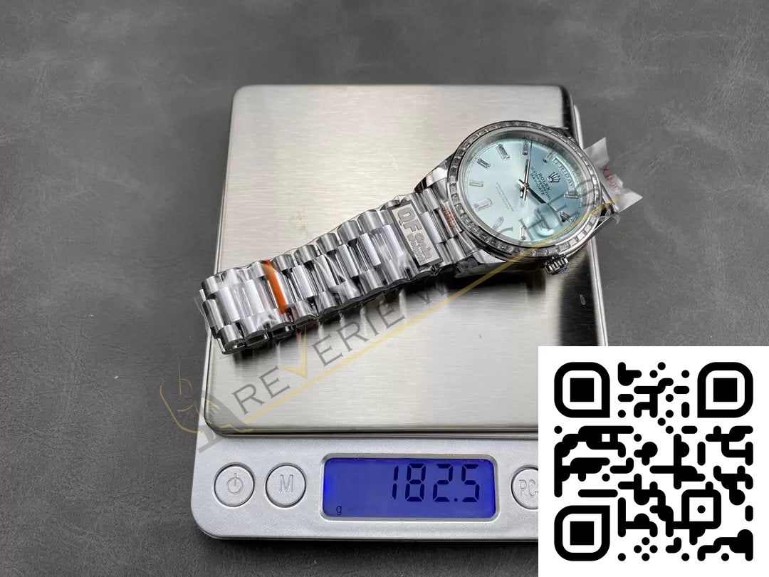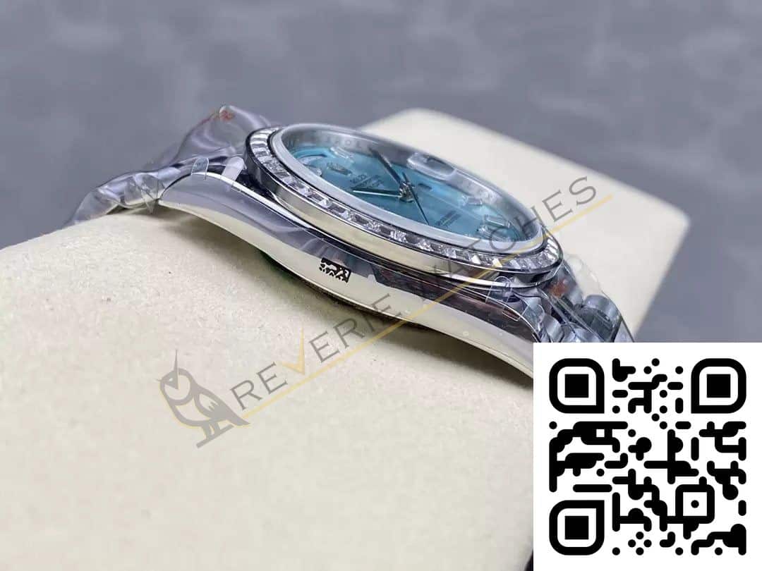 The best Rolex Day-Date 40 Diamond Bezel and Dial Replica super clone on the market with worldwide shipping and a 2 year Reverie Watches warranty.