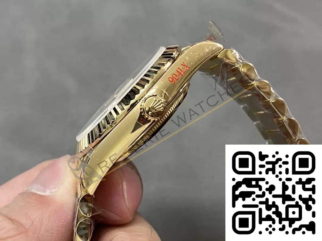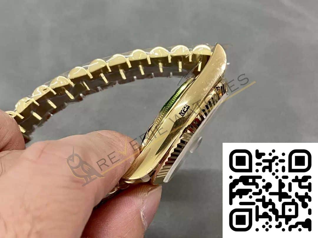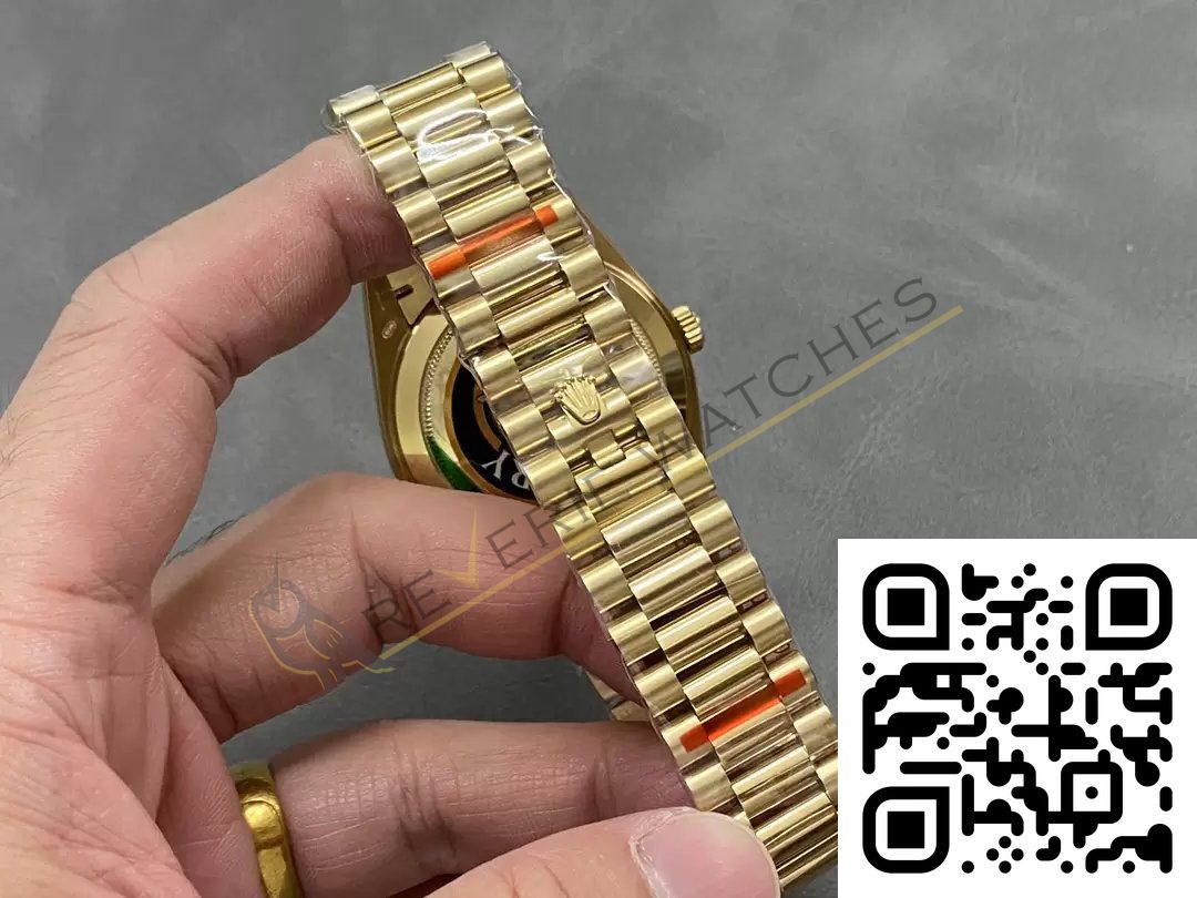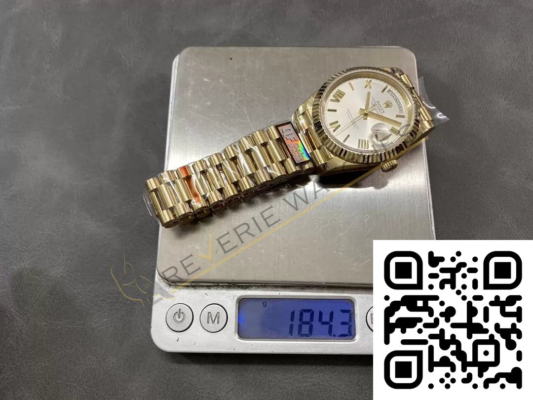 The best Rolex Day-Date 40 Yellow Gold White Roman Dial Replica super clone on the market with worldwide shipping and a 2 year Reverie Watches warranty.