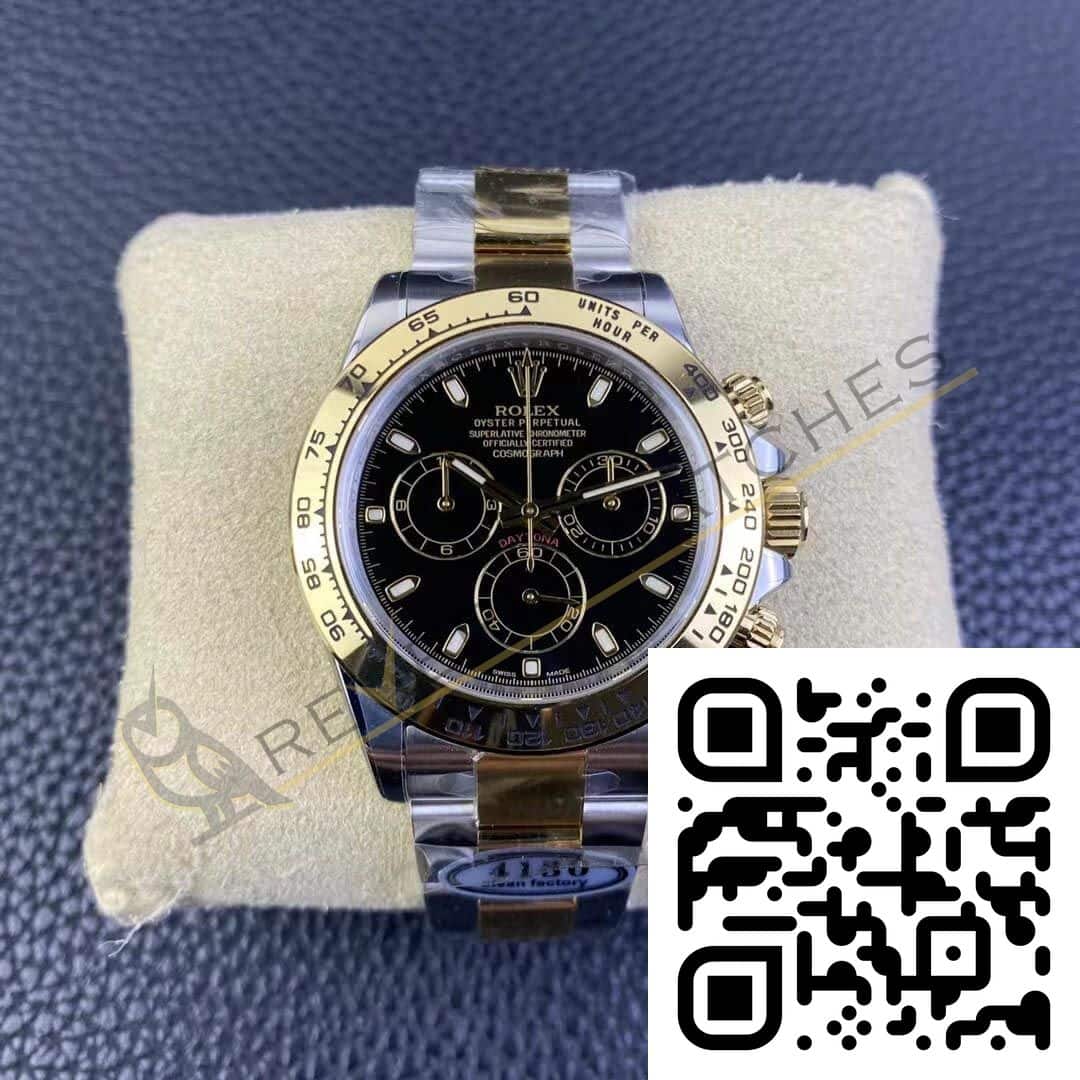 The best Rolex Daytona Two Tone Black Dial Replica super clone on the market with worldwide shipping and a 2 year Reverie Watches warranty.
