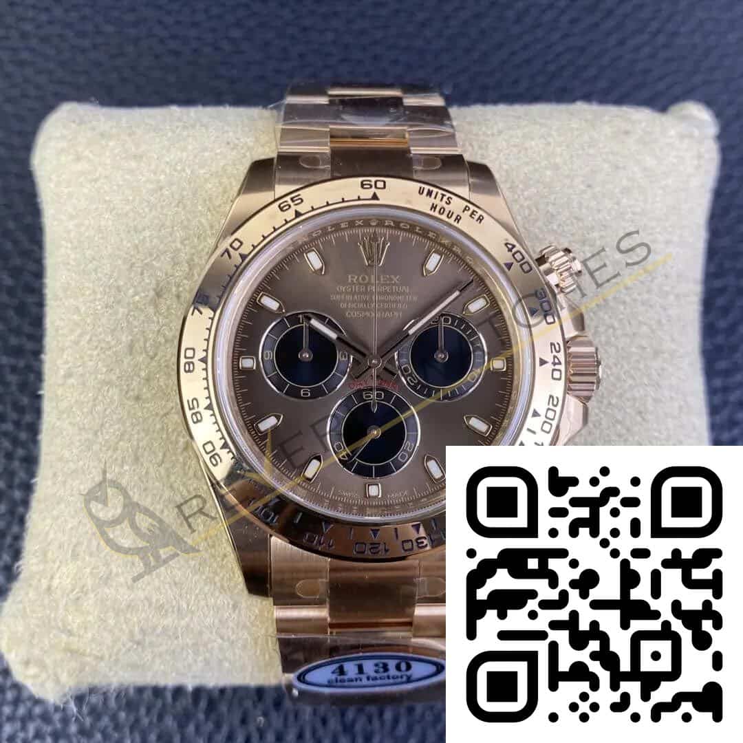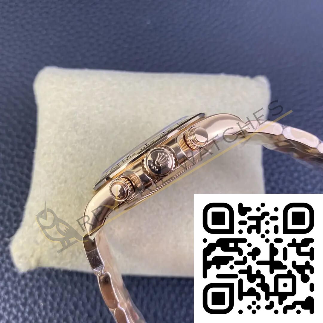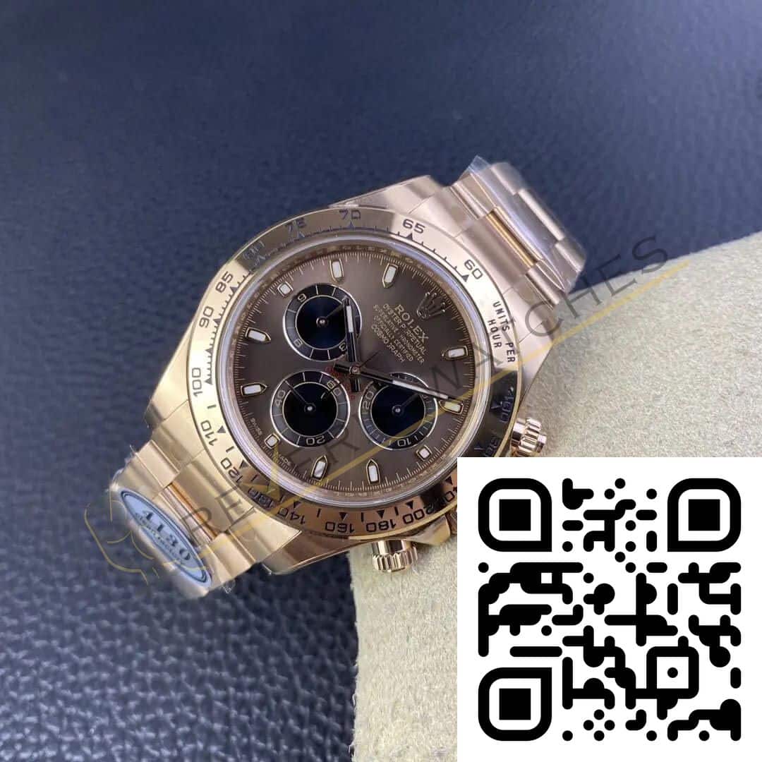 The best Rolex Daytona Rose Gold Brown Dial Replica super clone on the market with worldwide shipping and a 2 year Reverie Watches warranty.